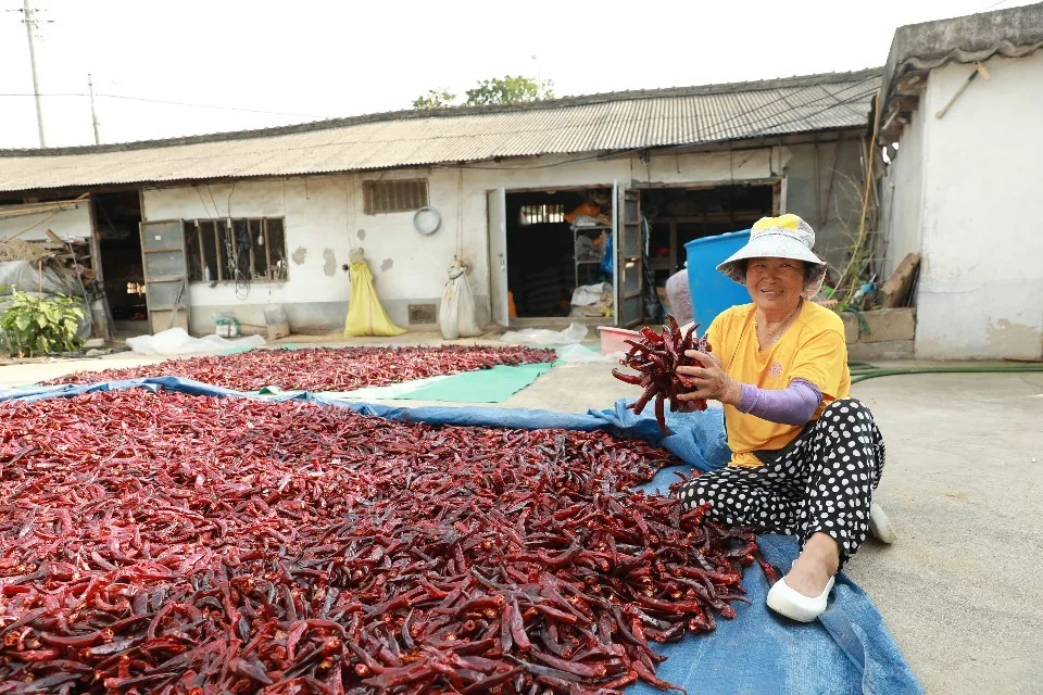 나란히 말라가는 고추들 사이로 내리쬐는 태양은