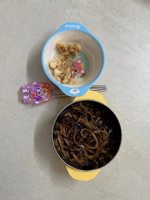 놀이가 이어진 뒤 저녁상에는 자장면이 올랐다. 두 아이는 나란히 앉아 젓가락을 들고 면을 집어 올렸다. 흘림 없이 한 그릇을 비워냈다. 해가 기울어도 집안은 웃음으로 가득했다. 어린이집에서 시작된 하루는 집 안 놀이와 저녁 식탁으로 이어졌고 다섯 살의 하루가 또 한 장 쌓였다.